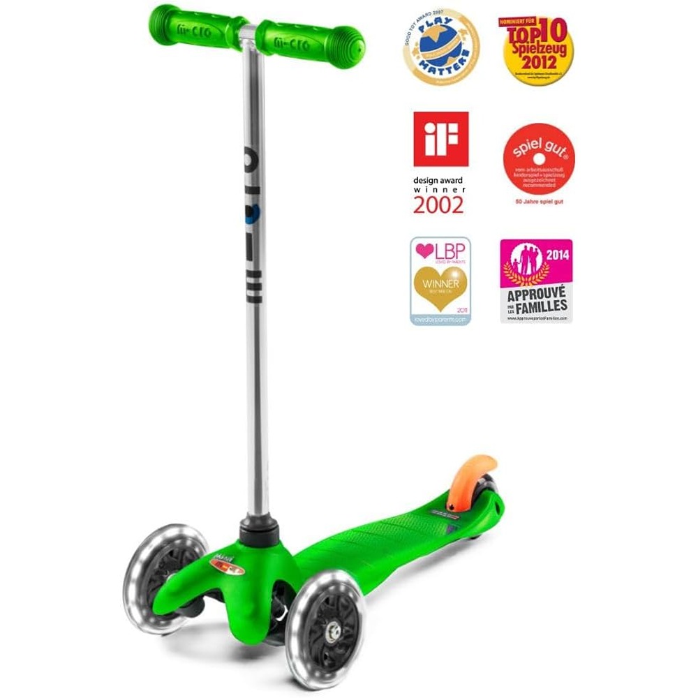 Micro Mini Classic Scooters Green with LED Wheels |Swiss Designed| Scooter for Kids | Kids Scooter | Scooter for Kids 2-5 Years
