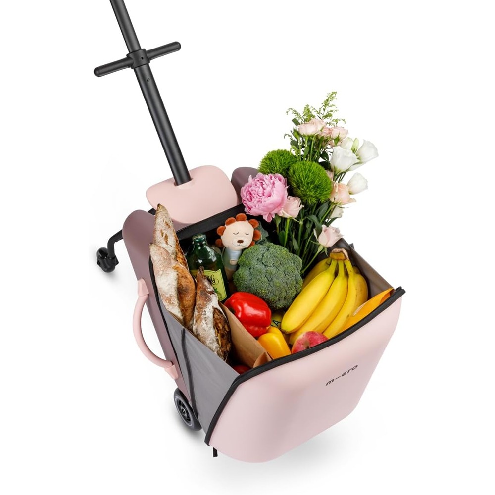 The Micro Allrounder Ride-On Cart is a multi-functional travel and shopping cart that will add convenience, fun and fashion to every trip with young children. Young children love riding the cart through the airport or on neighborhood errands, turning every trip into an adventure. The ride-on feature keeps children entertained and engaged, making the journey more enjoyable for parents and children alike. Detach the case to transform the cart into a lightweight, foldable push-trike that children can ride, offering even more versatility and fun. When traveling by air, the cart is compact enough to stow in most overhead compartments, and is lightweight for easy carrying. The case provides ample space to accommodate travel items, veggies from the market, groceries, and/or your child’s favorite toys. A removable net with zipper allows for compartmentalization of items for easy access, and helps you stay organized on the go.