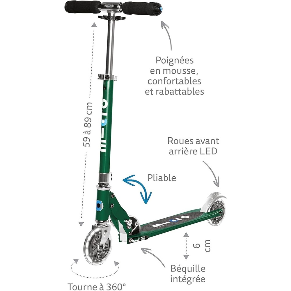 Micro Scooters | Micro Sprite LED Children’s Scooter | Handlebar Adjustable | Front Suspension | Foldable | Boys & Girls | 8yrs+