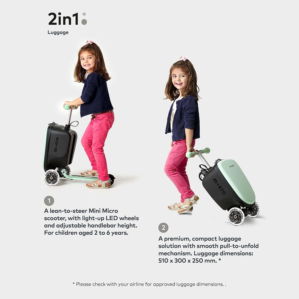Micro | Suitcase Scooter | Ride on Suitcase for Kids | Toddler Flight Essential | Foldable & Lightweight | 2-6yrs | Mint
