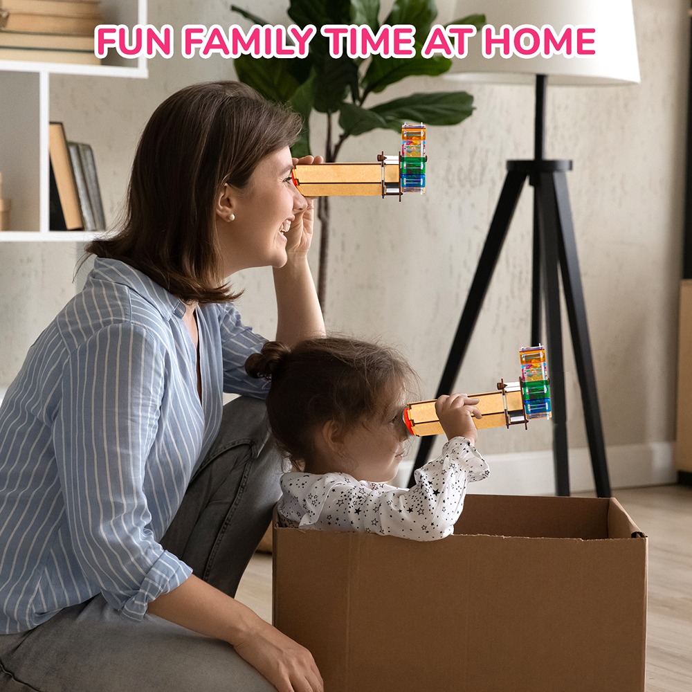 This is a Do It Yourself Activity Kit designed to help children understand fundamental principles of S. T. E. M. subjects (Science, Technology, Engineering and Mathematics)