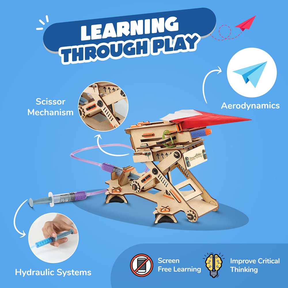 Introduces child to the concepts of Aerodynamics, hydraulic Systems and Scissor Mechanism